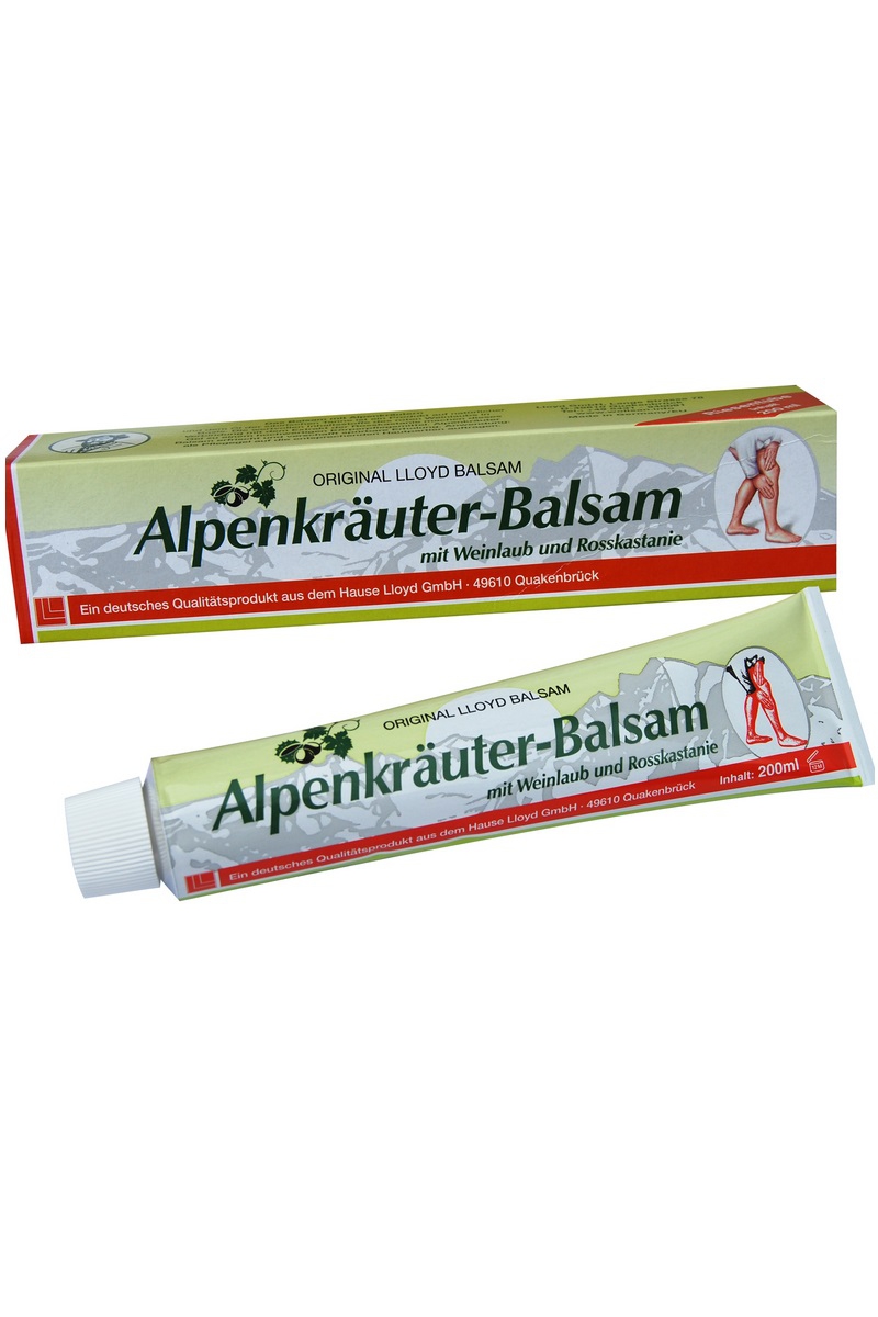 Balsam z ziół alpejskich z dodatkiem kasztanowca i liści czerwonych winogron.